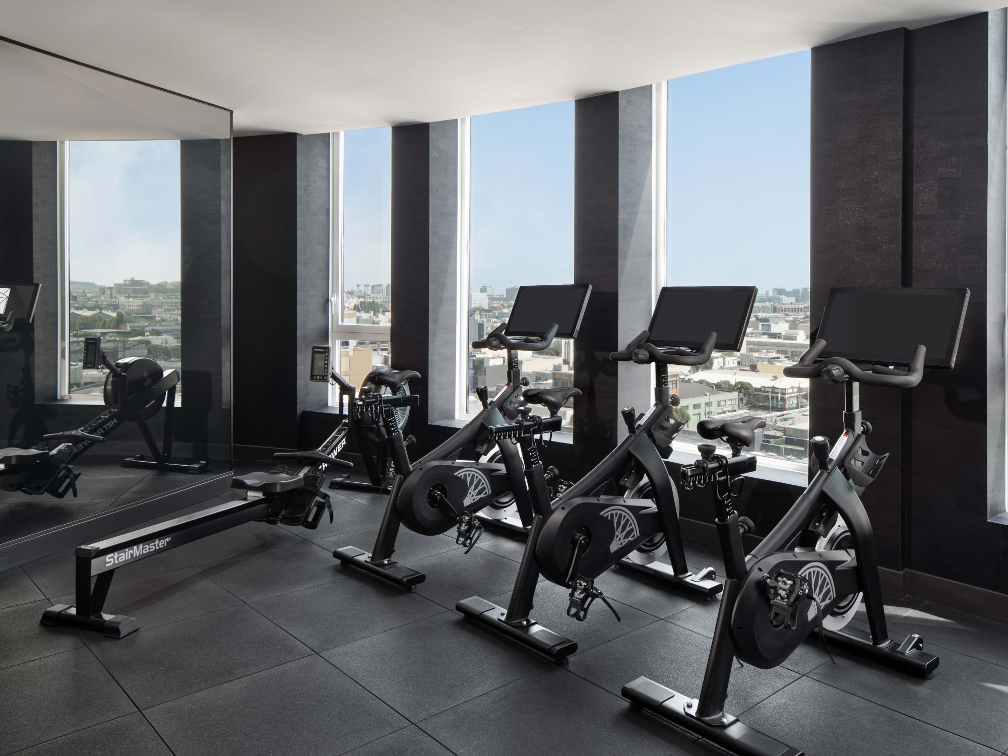 Residents at Fifteen Fifty enjoy direct access to Equinox Van Mission. This new fitness offering features sleek workout machines, windows with sweeping city views, yoga, barre, Pilates, and cycling studios, and premier boxing and martial arts classes. 1550 Mission St., San Francisco, CA 94103