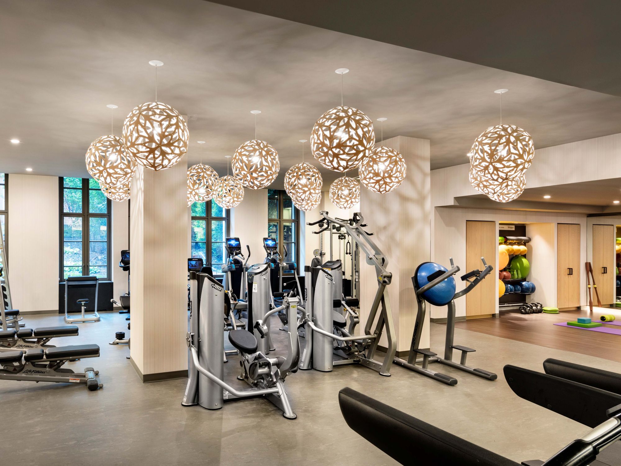 Elevate your workout at 261 Hudson’s Equinox-curated fitness center, where light streams in from expansive windows and artful fixtures. 261 Hudson St., New York, NY 10013