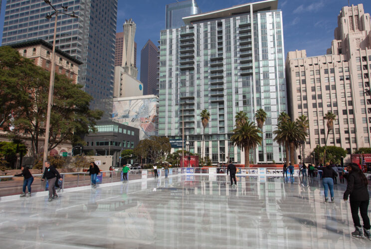 Enjoy ice skating in the heart of downtown Los Angeles now through January 11, 2026, at The Holiday Ice Rink, Pershing Square. Book tickets (skates included in the ticket price) to skate under the L.A. sun by day or the lights of the city skyline by night.